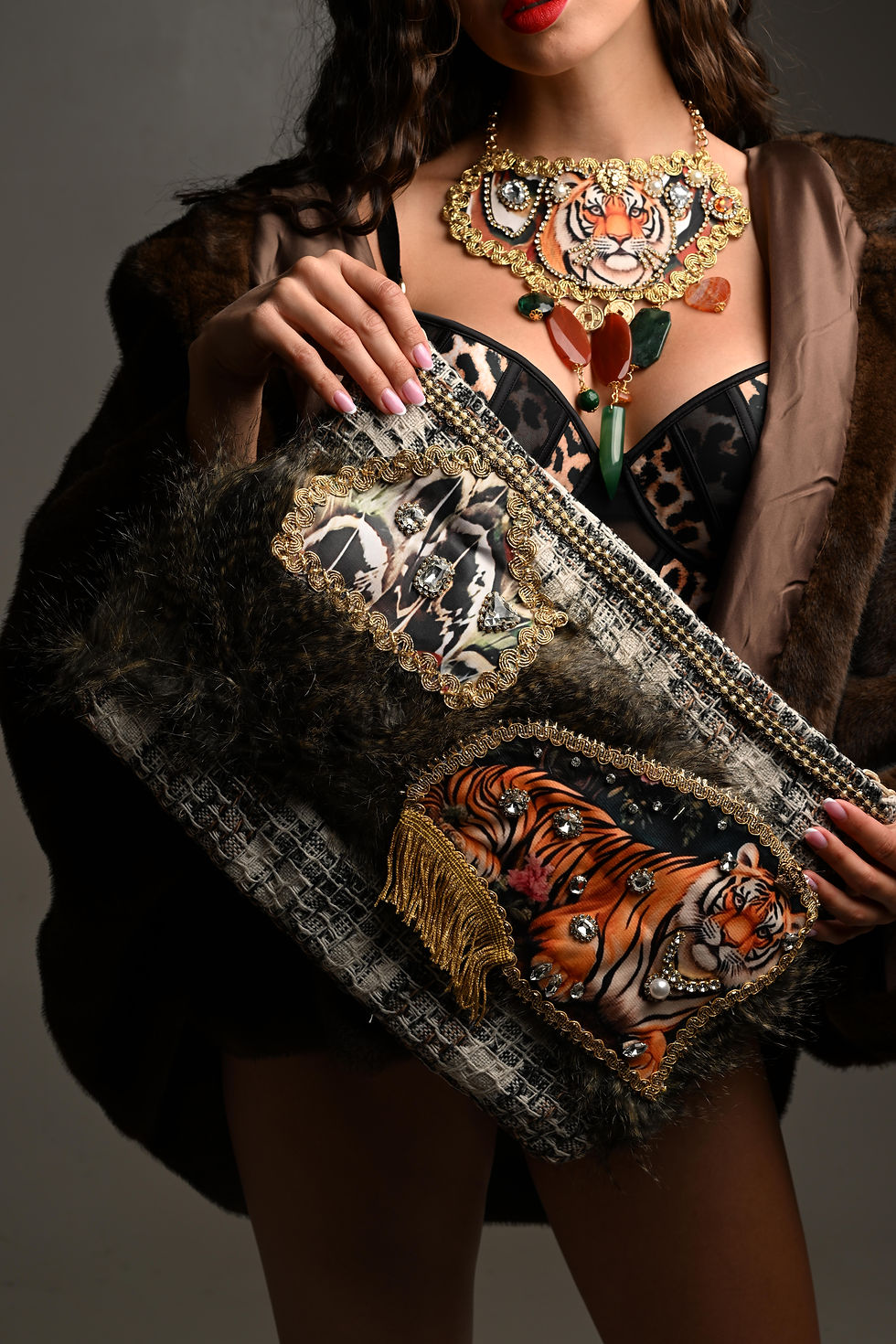 A bold and luxurious leopard-themed clutch bag, crafted to make a statement.