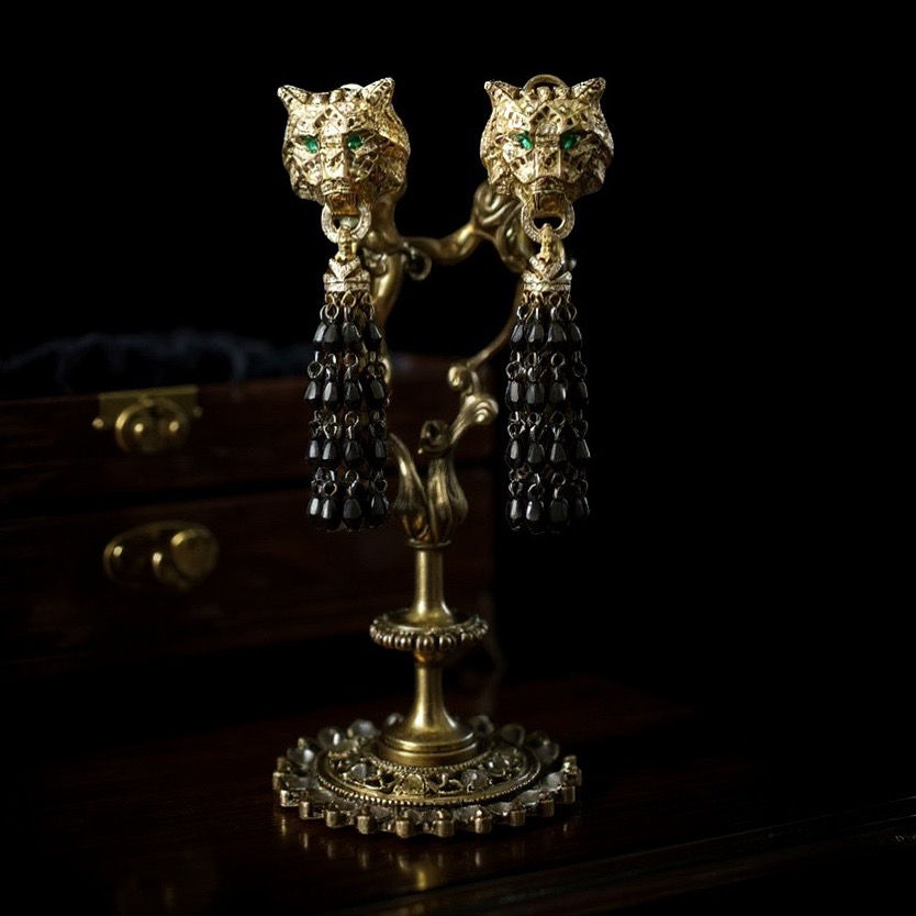 “Leopard Blossom” Couture Leopard Zircon & Bordeaux Teardrop Necklace with Matc